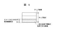 一般にパターンの欠陥検査では、被検査物体の画像を撮像する画像検出手段として一次元イメージセンサが用いられる。図4はイメージセンサの構成図であり、図5は、被検査物体の検査領域の平面図で、イメージセンサでパターンの検査領域を走査する場合に、一回の走査で画像が検出できる領域を示す。イメージセンサ8の光検出器の画素81の配列方向と直交する方向に検査対象物体を走査して二次元画像を取得する。複数の画素81が並んだ方向の長さをイメージセンサ8の高さと呼ぶ。また、被検査物体を製造中の複数の半導体チップを有する半導体ウェハとした場合、一つのチップのイメージセンサ8の高さと同じ方向の長さをチップ高さと呼ぶ。一般にチップ高さはイメージセンサ8の高さより大きいので、イメージセンサ8の一回の走査ではチップの部分の画像しか検出できない。このチップの部分画像の大きさは、検出を行うイメージセンサ8の高さと、チップ画像をこのイメージセンサ8に投影する結像光学系の結像倍率とで決まる。この高さをイメージセンサ8の有効撮像高さと呼ぶ。一般に使用されているイメージセンサと結像光学系の組合せでは、有効撮像高さはチップ高さより小さいので、チップ全面を検査するためには、複数回高さ方向にずらして走査する方法が用いられている。  In general, in pattern defect inspection, a one-dimensional image sensor is used as image detection means for capturing an image of an object to be inspected. FIG. 4 is a configuration diagram of the image sensor, and FIG. 5 is a plan view of the inspection area of the object to be inspected. When the image sensor scans the pattern inspection area, the area where the image can be detected by one scan is shown. Show. The inspection object is scanned in a direction orthogonal to the arrangement direction of the pixels 81 of the photodetector of the