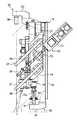 図6〜図8は、実装用ヘッド16を昇降につれて水平方向に変位させる昇降・変位機構の別の実施形態を示すものである。  6 to 8 show another embodiment of a lifting / displacement mechanism that horizontally displaces the mounting