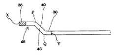 また、図3に示すように、係止リング30は、外端縁Xからから所要の位置P(連結部40のほぼ中央部)、および内端縁Yから所要の位置Q(内側リング部38のほぼ内側端縁部の位置)で、∠XPQおよび∠PQYがいずれも鈍角となるようにプレス加工によって互いに反対方向に屈曲されている。なお、外側リング部36と内側リング部38とはほぼ平行になるようにする。
