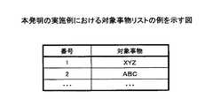 また、図6に示す対象事物リストを予め保持しておき、ここから上記評判情報に対応する対象事物を取得する。本実施例では、評判情報処理装置100は、評判情報が記載されている文と同じ文の中に、図6に示す対象事物リスト中に含まれる対象事物が存在する場合はそれを対象事物として取得し、存在しない場合は対象事物リスト中の対象事物のうち文書中で最初に出現するものを対象事物として取得することとしているが対象事物の取得方法はこれに限るものではない。図3の文書の2番目の文は、図6の対象事物リスト中の対象事物を含まないため、文書中で最初に出現する対象事物リスト中の対象事物である「XYZ」を対象事物として取得する。  Moreover, the target thing list | wrist shown in FIG. 6 is hold | maintained previously, and the target thing corresponding to the said reputation information is acquired from here. In the present embodiment, the reputation