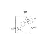 このとき、画像表示部104では、夫々の音データの音源位置を示す位置関係図401が、図4に示すように、表示される。ここで、図4において、402は音楽の音源位置であり、403は着信音の音源位置である。  At this time, in the