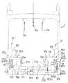 ここで、図1などから明らかなように、内側縦フレーム51a5、51b5とは、高床枠部51a、51bと立ち上がり枠部51d、51eとの共通な縦フレームをなし、側縦フレーム51c1、51c1は、立ち上がり枠部51d、51eと低床枠部51cとの共通な縦フレームをなしている。  Here, as is clear from FIG. 1 and the like, the inner vertical frames 51a5 and 51b5 form a common vertical frame between the raised