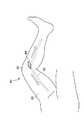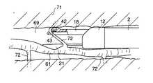 腔内69の皮下脂肪73を排除しながら処置シース2を腔内69に押し進め、目的とする側枝72に血管保持子21をアプローチする。このときも血管保持子21の円弧凹面49を血管61の上面に当て、血管61の上面を滑らせて前進させることができ、血管61に損傷を与えることがない。