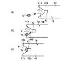また、V溝41の底部、すなわち、V字形状を形作る各辺41a,41bの交差部には、対向する一対の前記電極42,43が固定して設けられている。これらの2つの電極42,43は、同一面内になく、上下に位置して対向されている。