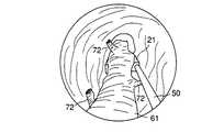 ここで、腔内69には表皮65の下層の皮下組織70、血管上結合組織71及び血管上結合組織71の下部には血管61が存在し、血管61には複数本の側枝72が分岐しており、側枝72の他端部は血管上結合組織71に結合されている。また、血管上結合組織71には皮下脂肪73が付着している。次に、前記モニタ画像を確認すると、図17に示すように表示され、術者は、モニター76によって血管61や側枝72を鮮明に観察できる。図17において、38aはダイセクター3の剥離部材38の先端部の画像である。