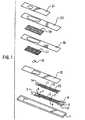 (トラック12の幅広露出域14が参照電極6に重なるように)導電性トラックの細長部分に夫々銀/塩化銀粒子トラック11,12及び13を積層し、更に参照/対電極14と作用電極5と充填指示電極7と接点域8,9及び10の位置のみが露出するように疎水性電気絶縁材料層15を積層する。この疎水性絶縁材料は短絡を防止する役割をもつ。この絶縁材料は疎水性であるため、露出した電極に試料を閉じ込めることができる。利用可能な絶縁材料の1例はSericol  Ltd.(Broadstairs,Kent,英国)から市販されているSericardである。場合により、第1のメッシュ層17と、第2の絶縁層18と、第2のメッシュ層19と、第3の絶縁層20と、テープ21を疎水性絶縁材料に積層してもよい。