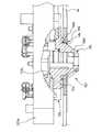 9 is a perspective view showing the internal structure of the transport arm, FIG. 10 is a plan view seen from the lower surface side of the transport arm that grips the media, FIG. 11 is a sectional view of the grip portion of the transport arm, and FIG. FIG. 13 is a plan view of the media guide provided in the gripping portion of the transfer arm, FIG. 14 is a plan view of the arm base for explaining the gripping mechanism, and FIG. 15 is a plan view of the gripping mechanism. FIG. 16 is an enlarged plan view of the gripping mechanism, FIGS. 17 to 19 are plan views for explaining the movement of the swivel plate and the gripping claws, and FIG. 20 is a sectional view of the gripping claws for explaining the gripping claws. FIG. 21 is a plan view of the arm base showing the kick-off mechanism, FIG. 22 is a front view of the transfer arm in a sectional view of the gripping part, FIG. 23 is a perspective view of the kick-off mechanism, and FIG. Sectional view of the rocking mechanism portion has, FIG 25 is a plan view, FIGS. 26 and 27 views, respectively schematic plan explaining movement of kick down mechanism of the rocking mechanism portion provided on the kick down mechanism.