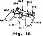 図1A,1Bは、本発明の一実施形態による、ビデオゲームコントローラへのマイクロフォンセンサアレイの配置の例である。図1Aは、ビデオゲームコントローラ110に、直線アレイ形状に等間隔で配置されたマイクロフォンセンサ112−1,112−2,112−3,112−4を示す。一実施形態では、マイクロフォンセンサ112−1〜112−4同士は、約2.5cm離れている。しかし、マイクロフォンセンサ112−1〜112−4は、適切な間隔であれば、どのような間隔を置いてビデオゲームコントローラ110に配置されてもよい点を理解すべきである。更に、ビデオゲームコントローラ110は、SONY  PLAYSTATION2ビデオゲームコントローラとして示されているが、ビデオゲームコントローラ110は、適切なビデオゲームコントローラであれば、どのようなものであってもよい。  1A and 1B are examples of placement of microphone sensor arrays on a video game controller, according to one embodiment of the present invention. FIG. 1A shows microphone sensors 112-1, 112-2, 112-3, 112-4 arranged at equal intervals in a linear array shape in the