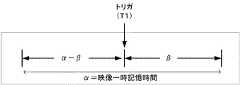 RAM(Random Access Memory)1011は、制御部1010が行う処理に必要なデータを一時格納する揮発性メモリであり、映像一時記憶領域1011aなどから構成される。映像一時記憶領域1011aは、常に、過去のデータを上書きしながら、予め決められたα時間分の最新の映像データを、一時的に記憶する。したがって、映像一時記憶領域1011aの記憶容量は、画像処理部のフレームレート等に基づいて、α時間分の映像データを記憶可能な大きさを備える。  A RAM (Random Access Memory) 1011 is a volatile memory that temporarily stores data necessary for processing performed by the