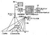 この時、テレビカメラ8 に接続されたモニタテレビ8a上では、物体表面でのスリット光の線状の反射パタンが画面横方向に移動していく様子が観察される。前述のように、スリット光3aの反射パタンの描く曲線の形状は、物体表面の凹凸情報を反映しており、従来の光切断法においては、反射パタンの線形状を時々刻々抽出し、これを再構成することにより、被測定対象の3次元形状を測定していた。