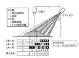 これに対して、昭和60年代になって、所謂「空間コード化法」として知られる方式群が提案された。「空間コード化法」は、測定対象表面の各点毎に、まず投影される光の投光角度を求め、その角度から三角測量原理に基づいて形状を求める方式である。この方法は、形状再生にあたって、「光切断法」のように「光切断線」を抽出するプロセスが必要ないため、測定の「ロバスト性」の高い方式群である。