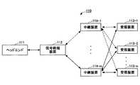図11において、中継装置114−1〜114−mは、それぞれ信号終端装置112及び複数の受信装置113と接続可能であり、線路上の伝送負荷等の影響により、中継装置114が変更されて最適な経路で伝送が行われる。  In FIG. 11, the relay devices 114-1 to 114-m can be connected to the