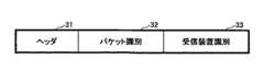 図3に示す制御用フォーマットは、ヘッダ31と、パケット識別32と、受信装置識別33とを有している。ここで、ヘッダ31は、上述したヘッダ21と同様に宛先アドレスや送信元アドレス等を有している。また、パケット識別32は、受信装置識別33に付加された装置に対する制御の内容を識別するための識別情報を有している。  The control format shown in FIG. 3 includes a