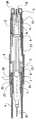 図5と同様に、図10には、活性剤容器7がケーシング1、2に対し前進し、注射針10が組織内に注射された位置にある自動注射装置が示されている。摺動スリーブ5は、活性剤容器7と共に、掛止めスリーブ20に沿って末端方向に前進しており、掛止め舌状体21は、針保護管4のキャビティ31内で休止している。  Similar to FIG. 5, FIG. 10 shows an automatic injection device in which the