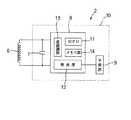上記制御用IC8は、制御部としてのMPU(マイクロプロセッサユニット)11の他、整流部12、変復調部13、メモリ部14などを構成する半導体素子をワンチップ化したものである。ここで、メモリ部14は、一時記憶用の消去可能な不揮発性メモリとしてEEPROMを有している。また、平滑部9は、図示はしないが平滑コンデンサ、ツェナーダイオードなどを有している。