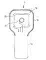 図6はIDタグ2と通信する手持式リーダライタ1のヘッド部の内部構造を模式的に示す横断面図、図7はヘッド部の内部構造を模式的に示す縦断面図である。これらの図6及び図7において、手持式リーダライタ1は、握り部を兼用する操作部15の先端にヘッド部16を設けてなる。このヘッド部16の前面側には液晶からなる表示部17(図2参照)が設けられている。操作部15には、例えば複数のキースイッチ18(図2参照)が設けられ、これらキースイッチ18により動作内容を指示したり、データを入力したりするようになっている。ここで、図6及び図7に示すようにヘッド部16にはアンテナ部19が内蔵されている。このアンテナ部19は、空芯アンテナ用コイル(第1のアンテナ用コイルに相当)20、有芯アンテナ用コイル(第2のアンテナ用コイルに相当)21及び受信アンテナ用コイル22(図6及び図7では省略、図10参照)からなる、空芯アンテナ用コイル20および受信アンテナ用コイル22は、ヘッド部内の前面側に同じ向きにして前後に並べて近接配置されている。また、有芯アンテナ用コイル21は、空芯アンテナ用コイル20の内周側に軸心が一致するようにして配置されている。