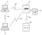 プリンタ24は、端末2からの文書データを印刷するプリンタであり、文書管理サーバ12と通信ネットワーク54で接続される。プリンタ24は、文書管理サーバ12から送信される文書データを用いて印刷を実行する。  The