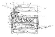 キャビネット2の上面に、プラテンガラスからなる原稿台12が設けられ、原稿台12を覆う原稿カバー13が設けられる。原稿自動搬送部11は、原稿カバー13に一体的に搭載される。原稿カバー13は、開閉自在とされ、原稿カバー13が閉状態のとき、原稿自動搬送部11によって原稿が搬送される。原稿カバー13が開状態のとき、原稿を原稿台12に載置できる。  A document table 12 made of platen glass is provided on the upper surface of the cabinet 2, and a