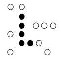 判定部312は、CPU301により動作を制御され、第1特定画像付加部311で生成された第1特定画像Aと、第2特定画像付加部308で生成された第2特定画像Bとをパターンマッチングすることにより、第2特定画像Bの一部が第1特定画像と同じか否かの判断を行なう。具体的には、判定部312は、第1特定画像付加部311で生成された第1特定画像Aの配置構成を検証する。そして、検証した第1特定画像Aの特定パターンが第2特定画像Bの一部に同じ特定パターンがあるかを判断する。例えば、第1特定画像Aが、図4に示すように、黒いドットで示すパターンの場合、図5に示すように、第2特定画像Bの一部である黒ドットの部分が第1特定画像Aの特定パターンと一致する。このとき、判定部312は、第2特定画像Bの一部が第1特定画像Aと同じと判断する。  The operation of the