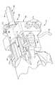 図6は、カッター内腔56内でカッター90を平行移動及び回転させるための手段を含む分解された生検ハンドル36を示す図である。電源コード18を介して2つの回転機構用電源が生検ハンドル36の基端部に接続されているため、横方向の動きと回転方向の動きを別々に達成することができる。これらの2つの回転機構用電源は、ねじで互いに固定される取り外し可能なシェル94と下側のシェル96との間に画定された配線用開口92からハンドル36内に延びている。取り外し可能なシェル94は、電源コード18をハンドル36に接続する際に取り外される。下側ギアハウジング98は下側シェル96に支持されており、上側シェル100と協働して、細長い駆動ねじ102、細長い軸方向のねじ104、及びカッターキャリッジ106の動きを制限している。具体的には、ねじ102及びねじ104は共に回転可能であり、互いに平行に配置されていると共にカッター内腔56の長手方向の軸に平行に配置されている。それぞれのねじ102及びねじ104は、電源コード18からのそれぞれの電力により駆動される。駆動ねじ102は、キャリッジ106に挿入され、その対応するリッジと相互作用して、駆動ねじ102の回転の方向及び速度に応じてキャリッジ106が長手方向に移動する。