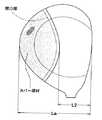 なお、前記各比(L1/La)、(L2/La)及び(L3/La)を限定したときには、フェース部3だけではなく、その後方に位置しかつ打球時に大きな衝撃力が作用する部分についても金属材料により形成されるため、耐久性の低下を確実に防止しうる。  When the respective ratios (L1 / La), (L2 / La), and (L3 / La) are limited, not only the