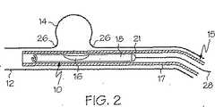図11では、既にシートが配置され、カテーテル配送装置が引き戻され、プッシャワイヤが取り外され、装置が動脈瘤14の頚部26に括りつけられている。この実施形態において、図8に示される実施形態とは異なり、血管壁34及び動脈瘤頚部26に対して凸状でないシート18が示されている。  In FIG. 11, the sheet is already in place, the catheter delivery device is pulled back, the pusher wire is removed, and the device is tied to the
