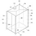 図19に示すように、本形態例の包装袋210の袋本体201は、四角形状の底面を袋本体201に付与する底部フィルム230と、この底部フィルム230の両側に互いに対向した前面フィルム202および後面フィルム203と、内向きに2つ折りにされて前記前面フィルム202および後面フィルム203の間に配置された一対の側部フィルム204とを備える角底袋タイプの袋本体である。この袋本体201の側部には、計4本の補強部材206が溶着されている。