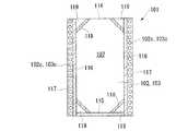 そして、側部フィルム104の側縁部104bを、前面フィルム102又は後面フィルム103の側縁部102a,103aと溶着することにより、側縁部シール部116を形成する。これにより、穴102c,103cを通して側部フィルム104のシーラント層が露出された格好となる。ここで、側縁部シール部116の形成は、上述したように、前面フィルム102および後面フィルム103の穴102c,103cの周辺を未シール部117として残すようにするとよい。