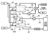 さらに、この気化装置では、前記冷熱利用設備18をバイパスして前記配管24と配管22とを接続するバイパス配管(バイパス通路)28が設けられている。このバイパス配管28と配管22との合流部分には三方切替弁からなるバイパス切替弁(バイパス切替手段)29が設けられ、このバイパス切替弁29の開閉により、配管24を流れる熱媒体の一部が前記バイパス配管28を通じて配管22にバイパスされる状態と、当該バイパスが阻止される状態とに切替えられるようになっている。