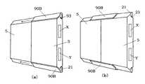 また、本実施形態の第2変更例として、追加機能ユニット5の上下両端部は、図13(a)に示すように、係止溝23を有するテーパ部21を有し、連結部材90Bは、前記テーパ部21に摺動接触するとともに、一端に係止溝23に嵌め込まれるフック93を有するように形成されることが好ましい。この場合は、追加機能ユニットの上下両端部それぞれにおいてテーパ部21に連結部材90Bがはめ込まれた後、図13(a)の矢印で示されるように、隣接する追加機能ユニットに向けて連結部材90Bをスライドさせる。これにより、図13(b)に示すように、隣接する追加機能ユニット5間の安定した機械的接続が連結部材90Bの使用によって得られる。  As a second modification of the present embodiment, the upper and lower ends of the