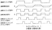 低周波(L)微分ノイズの成分の影響を除去し、サンプリング間隔としては、1.高周波(H)の一周期分とし、高周波(H)微分ノイズの成分の影響を除去する(診断信号サンプル(1))、または、2.高周波(H)の微分ノイズの影響が小さくなる、励磁後半部分でサンプルを行う(診断信号サンプル(2))とする。この二つのサンプリング間隔のうち、どちらを採用してもよい。 The influence of the low frequency (L) differential noise component is removed, and the sampling interval is as follows: 1. One cycle of the high frequency (H), and the influence of the component of the high frequency (H) differential noise is removed (diagnostic signal sample (1)), or Sampling is performed in the second half of excitation (diagnostic signal sample (2)), where the influence of high frequency (H) differential noise is reduced. Either of these two sampling intervals may be adopted.