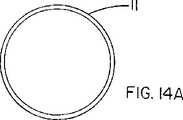 図14A〜図14Gは、シースコンポーネントが、図14Aに示される、最大サイズで提供され、そのサイズで展開することを意図している、別の拘束シースの横断面を示す。図14Bは、拘束シース11が圧縮されたエンドプロテーゼ12及びカテーテルバルーン15(即ち、ステント及びバルーンは、それらが血管系に挿入される圧縮された直径である)の周りに取り付けられた、この実施態様のアッセンブリを表わす。拘束シース11の材料が過剰であるとフラップ140になる。このフラップ140は、好ましくは、隣接する内部表面142に沿って一時的に互いに結合する。この内部表面142の結合によって、拘束シースは圧縮しているエンドプロテーゼ及び収縮しているバルーンを血管系への挿入のために、小寸の、圧縮直径に保持することができる。該結合は、医用級シリコーンなどの生体適合性のある接着剤を用いて達成することができ、あるいはまた、対向する内部表面142を熱的に結合させることによって達成することができる。結合表面の面積は、エンドプロテーゼ12の展開のために、続いて起こるカテーテルバルーン15の膨張の間に容易に分離することができるよう最小であることが最も好ましい。フラップ140をデバイス10の外部表面に巻きつけている、最終的なアッセンブリの工程が、図14Cに示される。好ましくは、フラップ140の端部は、位置142で前もって施される結合によって位置144で一時的にしっかり固定される。  14A-14G show a cross-section of another constraining sheath in which the sheath component is provided in the maximum size shown in FIG. 14A and is intended to be deployed at that size. FIG. 14B shows this implementation in which the constraining