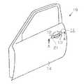 図2に示すように、車両ドア10にはアウトサイドハンドル11が設けられている。アウトサイドハンドル11は、車両ドア10の後部側に位置するように、該車両ドア10のドアアウタパネル14に取り付けられている。  As shown in FIG. 2, an