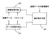 ところで、画像処理手段がパラメータに基づいて画像処理可能であるのであれば、パラメータを生成することによって任意の画像処理を実現することができ、そのような態様として、第八の画像データ管理装置にかかる発明は、第一の画像データ管理装置〜第七の画像データ管理装置のいずれかに記載の画像データ管理装置において、上記操作指示手段は、上記画像処理手段で実行可能な画像処理内容についての選択操作を入力して上記パラメータを生成し、生成後のパラメータを上記データ記憶手段にて管理させる構成としてある。By the way, if the image processing means can perform image processing based on the parameters, arbitrary image processing can be realized by generating the parameters. As such an aspect,the eighth image data management apparatus can This invention isthe image data management device according to anyone of the first image data management device tothe seventh image data management device, wherein the operation instructing means relates to image processing contents executable by the image processing means. The configuration is such that the parameter is generated by inputting a selection operation, and the generated parameter is managed by the data storage means.