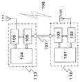 図1は本発明にかかる情報伝送方式の実施例の要部を示す概念図である。送信部ブロック112から受信部ブロック113へデータを送信するものとする。101は送信すべき情報を有する回路要素であり104は前記送信情報を受信する回路要素である。回路要素101の発する送信情報はカテゴリー分けされ第1カテゴリー情報は前記送信データを変調器102により変調し送信アンテナ110より電磁波として送信する。第2カテゴリー情報はインターフェース回路103を経て有線にて信号伝達される。前記送信アンテナより発せられ空間(伝播路108)を伝播する第1カテゴリー情報を運ぶ電磁波信号は受信アンテナ111により受信され復調器106により復調され、回路要素104へ出力される。また有線伝送された第2カテゴリー情報はインターフェース回路105を介して回路要素104へ伝達される。第2カテゴリー情報はデータの受信ブロック113から送信部ブロック112へ送信されることもありその場合はインターフェース回路105からインターフェース回路103へ送信される。  FIG. 1 is a conceptual diagram showing the main part of an embodiment of an information transmission system according to the present invention. It is assumed that data is transmitted from the