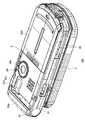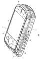 第1筐体2は、図2および図3に示すように、可動機構部4の作動状態(開状態、閉状態)にかかわりなく露出する第1面2aに例えばLCD(liquid crystal display)パネルや有機EL(electroluminescent)ディスプレイパネルからなる表示パネル21が配置される。この表示パネル21の図2中の上部には、スピーカ22が内蔵されている。