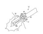 挿入部12は、処置部14に対して回転自在なシース22を備えている。シース22は、優れた可撓性を有する樹脂材により形成されている。シース22は、樹脂材の他、可撓性を有する金属材製のコイルにより形成されていても良い。シース22の外径は1mmないし6mmであり、特に1.8mmないし3.6mmであれば内視鏡100のチャンネル102への挿通性が良いので好ましい。このシース22の内部には、操作・導電ワイヤ18がシース22の軸に沿って進退可能に挿通されている。 The