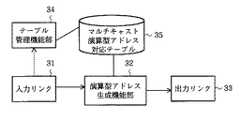 図5に示すように、演算型アドレスの生成を行う演算型アドレス生成機能部32は、パケット受信機能を有する入力リンク31と、マルチキャスト演算型アドレス対応テーブル35と、パケット送信機能を有する出力リンク33に接続されている。また、マルチキャストへの端末参加とテーブルへ登録する演算型アドレスの作成を行うテーブル管理機能部34が、入力リンク31と、マルチキャスト演算型アドレス対応テーブル35とに接続されている。