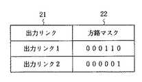 図4は出力リンク演算データテーブル15を説明するための図である。この出力リンク演算データテーブル15は、出力リンクリストフィールド21と方路マスクフィールド22から構成され、出力リンクからアドレス演算に必要な方路マスクを検索するために使用される。