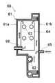 蒸気発生装置60は、正面から見て左右方向に偏平となったハウジング61を有し、ハウジング61の内部には、下部に蒸気発生ヒータ62、上部に蒸気昇温ヒータ63が設けられている。蒸気発生ヒータ62と蒸気昇温ヒータ63はいずれもシーズヒータからなり、右側面から見たとき、すなわち図1及び図2の視点では、蒸気発生ヒータ62は馬蹄形を描き、蒸気昇温ヒータ63は長円形のループを描く。蒸気昇温ヒータ63の長円形ループは図1において紙面奥行き方向に重なる連続二重ループとなっている。 The