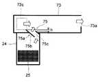図7に示すように、第2エジェクタ75のノズル部75aは、互いに間隔を置き、ほぼ平行して排気ダクト24から希釈ダクト73の中に突き出す吸引口側導風板75bと吸気口側導風板74cを含む。吸引口側導風板75bの方が吸気口側導風板75cよりも希釈ダクト73内への突き出し量が大であり、両者の突き出し量の間には差hが存在する。ノズル部75aは排気ダクト24との連通部より吸引口72cの方へ傾斜している。 As shown in FIG. 7, the