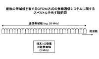 例えば、図1に示すように、複数の帯域幅を有するOFDM方式の無線通信システムに関するスペクトルは、送信帯域幅、例えば20MHzに対して、20MHzの広い帯域幅でも5MHzの狭い帯域幅でもOFDM方式の通信がそれぞれ行われる。 For example, as shown in FIG. 1, the spectrum related to an OFDM wireless communication system having a plurality of bandwidths is a transmission bandwidth, for example, 20 MHz, with a wide bandwidth of 20 MHz or a narrow bandwidth of 5 MHz. Each communication takes place.