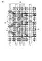 フィン領域AA2−1,AA2−2の一部分上にはコンタクト領域C2−1が形成され、フィン領域AA2−1,AA2−2,AA2−3の一方の端部上にはコンタクト領域C2−2が形成されている。フィン領域AA2−3の一部分上には、コンタクト領域C2−3が形成されている。さらに、フィン領域AA2−4の一部分上にはコンタクト領域C2−4が形成され、フィン領域AA2−4の一方の端部上及びゲート電極GC1−1上にはコンタクト領域C2−5が形成されている。ゲート電極GC2−2上にはコンタクト領域C2−6が形成されている。コンタクト領域C2−2が形成されるフィン領域AA2−2は、チャネル長方向と異なる方向(例えば、チャネル長方向と略直交方向)に曲がった領域を有している。同様に、コンタクト領域C2−2が形成されるフィン領域AA2−1,フィン領域AA2−3は、チャネル長方向と異なる方向(例えば、チャネル長方向と略直交方向)に曲がった領域を有している。なお、各コンタクト領域は、各フィン領域と上層配線とを接続するためのコンタクト材が形成される領域である。 A contact region C2-1 is formed on part of the fin regions AA2-1, AA2-2, and a contact region C2-2 is formed on one end of the fin regions AA2-1, AA2-2, AA2-3. Is formed. A contact region C2-3 is formed on a part of the fin region AA2-3. Further, a contact region C2-4 is formed on a part of the fin region AA2-4, and a contact region C2-5 is formed on one end of the fin region AA2-4 and on the gate electrode GC1-1. Yes. A contact region C2-6 is formed on the gate electrode GC2-2. The fin region AA2-2 where the contact region C2-2 is formed has a region bent in a direction different from the channel length direction (for example, a direction substantially orthogonal to the channel length direction). Similarly, the fin region AA2-1 and the fin region AA2-3 in which the contact region C2-2 is formed have a region bent in a direction different from the channel length direction (for example, a direction substantially orthogonal to the channel length direction). Yes. Each contact region is a region where a contact material for connecting each fin region and the upper layer wiring is formed.