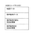 HDD11には、図2に示すように、地図データの他にも、交差点案内等に使用される音声案内データが記憶されている。また、HDD11には、後述するように、ユーザにより音声案内が不適当であると判定された交差点の位置、及び当該交差点における走行経路を示すデータ(以下、「音声案内不適当交差点情報」という)が記憶される。更に、HDD11には、ユーザにより音声案内の内容(メッセージ)が指定された交差点(以下、「音声案内指定交差点」という)の位置、当該交差点における走行経路及び指定された音声案内を示すデータ(以下、「音声案内指定交差点情報」という)が記憶される。  As shown in FIG. 2, the
