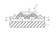 なお、本実施形態のFETの製造方法においては、収束イオンビームにより、各電極を形成しているが、例えば、エッチング条件を最適化することにより、プラズマエッチング法及びスパッタ法等を適用することもできる。その場合、例えばスパッタ法等により、各電極を形成する領域以外の部分に、酸化シリコン、酸化アルミニウム、酸化チタン、酸化タンタル、酸化ジルコニウム、酸化ハフニウム、窒化シリコン、窒化アルミニウム、窒化ジルコニウム、チタン酸バリウム及びチタン酸ストロンチウム等のセラミックス材料からなるマスクを形成した後、保護膜6a及び6b並びに導電性ダイヤモンド層3a及び3bがエッチングされない条件でエッチング又は逆スパッタ等の処理を行い、電極金属層7における電極形成予定領域以外の部分を除去する。  In the FET manufacturing method of this embodiment, each electrode is formed by a focused ion beam. However, for example, a plasma etching method or a sputtering method may be applied by optimizing the etching conditions. it can. In that case, for example, by sputtering, the silicon oxide, aluminum oxide, titanium oxide, tantalum oxide, zirconium oxide, hafnium oxide, silicon nitride, aluminum nitride, zirconium nitride, barium titanate are formed on the portion other than the region where each electrode is formed. Then, after forming a mask made of a ceramic material such as strontium titanate, the