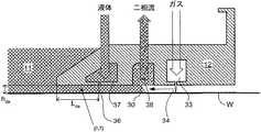 を含む。According to one aspect, the present invention uses a projection system to project a pattern from a patterning device onto a substrate having a liquid supply system arranged to supply liquid to a space between the projection system and the substrate. A lithographic projection apparatus arranged to do so is provided. The lithographic projection apparatus comprises a liquid removal system, the liquid removal system comprising: