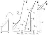 また、前記グラフィカルユーザインターフェースは、前記第1形状の表示領域と前記第2形状の表示領域との間で変形される際に、画面内に設定された所定の中心点を基準にして、当該中心点と前記曲折部との間の距離変化が極小になるような軌跡で前記曲折部を移動されてもよい。また、前記基準点に一致するように移動される前記一対の曲折部と、前記基準点と異なる境界線の端部に一致するように移動される前記他の曲折部とで、異なる中心点が設定されていてもよい。さらに、前記グラフィカルユーザインターフェースは、画面中心を基準として、前記曲折部がどの象限に位置するかに応じて、前記曲折部の移動軌跡を決定するための中心点が切り替えられてもよい。 In addition, the graphical user interface is configured so that the center is determined with reference to a predetermined center point set in the screen when the display area is deformed between the display area of the first shape and the display area of the second shape. The bent portion may be moved along a trajectory that minimizes a change in distance between a point and the bent portion. The pair of bent portions that are moved so as to coincide with the reference point and the other bent portions that are moved so as to coincide with an end portion of a boundary line different from the reference point have different center points. It may be set. Furthermore, the graphical user interface may switch a center point for determining a movement locus of the bent portion according to which quadrant the bent portion is located with reference to the center of the screen.