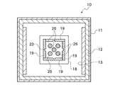 この成形装置10では、金属製の真空チャンバー11の内壁に、全面にわたって設けられた断熱材12と、断熱材12の縦壁内に設けられた加熱手段としてのカーボンヒータ13とが設けられ、更に、真空チャンバー11内部の略中央部に中空部21を有するモールド15が収容されている。