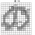 図20は、さらに塗潰されていない部分の色を決めるために、領域を4×4の画素の矩形で分割し、前記と同じルールで塗潰す色をきめたものである。例えば、矩形2010はパターン1822と同じになるから、色1820で塗潰し、矩形2020はパターン1821と同じになるから色1820で塗潰す。  In FIG. 20, in order to further determine the color of the unfilled portion, the area is divided into 4 × 4 pixel rectangles, and the colors to be painted are determined according to the same rule as described above. For example, since the rectangle 2010 is the same as the