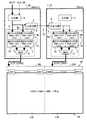 本発明のさらに別の表示用制御素子は、上記課題を解決するために、外部から少なくとも画像データが入力される入力部と、容量がほぼ等しい第1ラインメモリ及び第2ラインメモリと、他の表示用制御素子との間で少なくとも画像データの相互交換を可能にするデータ入出力部と、上記入力部、上記第1及び第2のラインメモリ、及び上記データ入出力部を制御する制御部とを備え、上記制御部が、上記第1及び第2のラインメモリの容量以下の解像度に対応した第1モードでは、上記入力部より入力された1ライン分の画像データを上記第1ラインメモリに格納しながら、上記第2ラインメモリより既に格納されている1ライン前の画像データを読み出す処理を、1ライン毎に上記第1及び第2のラインメモリにおける格納動作と読み出し動作とを交替させながら行う一方、上記第1及び第2のラインメモリの容量を超える解像度に対応した、N(Nは2以上の整数)画素ずつN系統で入力される画像データの何れか一系統が上記入力部より入力される第2モードでは、上記入力部より入力される所定系統の1ライン分の画像データのうち、駆動を担う対応画面の画像データは、上記データ入出力部を介して上記他の表示用制御素子より転送されてくる画像データと共に上記第1ラインメモリに格納し、対応画面以外の画像データは、上記データ入出力部を介して駆動を担う所定の表示用制御素子へと転送し、かつ、上記の如く第1ラインメモリへ画像データを格納し、他の表示用制御素子へと画像データの転送を行っている期間に、上記第2ラインメモリより既に格納されている1ライン前の画像データを読み出す処理を、1ライン毎に上記第1及び第2の各ラインメモリにおける格納動作と読み出し動作とを交替させながら行うことを特徴としている。 In order to solve the above-described problem, another display control element of the present invention includes an input unit to which at least image data is input from the outside, a first line memory and a second line memory having substantially the same capacity, and other A data input / output unit that enables at least image data to be exchanged with a display control element; a control unit that controls the input unit, the first and second line memories, and the data input / output unit; In the first mode corresponding to the resolution below the capacity of the first and second line memories, the control unit stores image data for one line input from the input unit in the first line memory. While storing, the process of reading out the image data of the previous line stored from the second line memory is read and stored in the first and second line memories for each line. While the operation is alternated, any one of the image data input in N systems with N (N is an integer of 2 or more) pixels corresponding to the resolution exceeding the capacity of the first and second line memories. In the second mode in which the system is input from the input unit, among the image data for one line of the predetermined system input from the input unit, the image data of the corresponding screen responsible for driving is transmitted via the data input / output unit. The image data transferred from the other display control element is stored in the first line memory, and the image data other than the corresponding screen is a predetermined display control element that is driven through the data input / output unit. And the image data is already stored in the second line memory during the period in which the image data is stored in the first line memory as described above and the image data is transferred to other display control elements. That the process of reading image data of one line before is characterized by performing while alternating the storage operation and the read operation in the first and second of each line memory for each line.